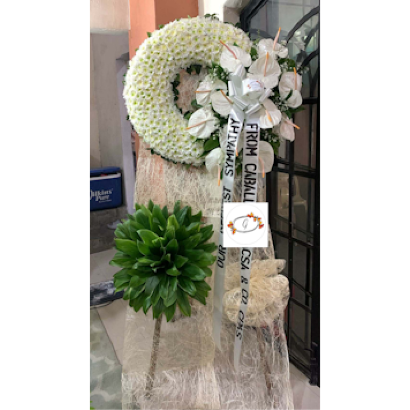 Wrearth arrangement all white flowers anthurium and malaysian mums.