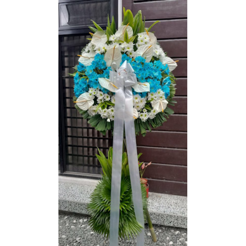 Funeral and sympathy flowers one layer arrangement.
